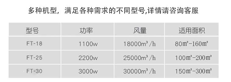 風(fēng)量大、送風(fēng)遠:每小時最大風(fēng)量為20000至80000立方米,可根據(jù)客戶要求選取,風(fēng)壓大、送風(fēng)遠。