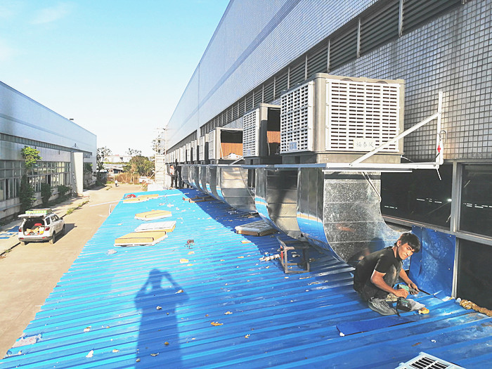 第四步冷風(fēng)機的安裝順風(fēng)管道,或者安裝冷風(fēng)機彎頭,冷風(fēng)機出風(fēng)口為670*670MM尺寸