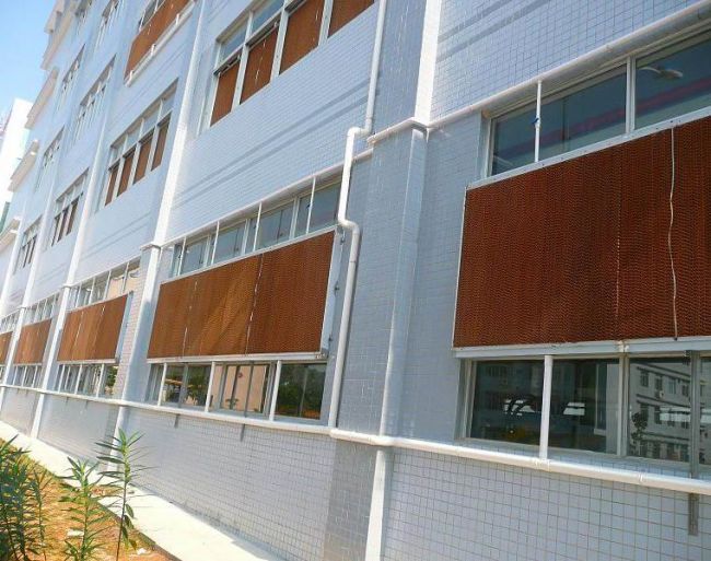 濕簾是一種通過(guò)水循環(huán)作用將空氣中的熱量吸收并排出的降溫裝置。在東莞企石進(jìn)行改造之前,廠房?jī)?nèi)的降溫設(shè)施主要是空調(diào),但是由于室內(nèi)采光不足,加上機(jī)房的空調(diào)設(shè)備會(huì)引發(fā)較高的電費(fèi),因此該企業(yè)選擇了濕簾降溫方式。