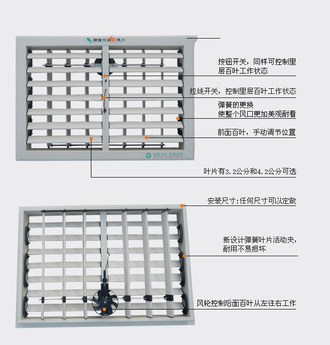 環(huán)?照{(diào)直吹電動風咀哪種好用!市面上有很多種類型的電動風咀,風動風咀等等不同顏色和不同形狀的很多,具體哪種比較好用呢!福泰廠家提供的是上下左右可以調(diào)動搖擺的韌性很強的電動風咀,根據(jù)環(huán)?照{(diào)出風口的尺寸不同來量身定做風咀。顏色也是可以有訂做但前提是量一定要夠多才行的。下面小編解析下電動風咀的特長: