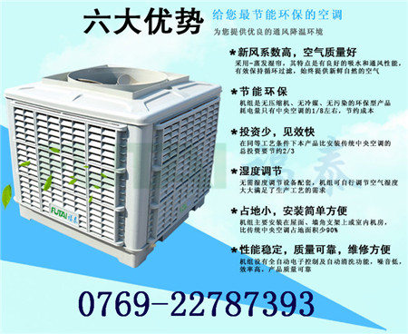 東莞水冷環(huán)?照{(diào)機(jī)降溫通風(fēng)設(shè)備 環(huán)保空調(diào):通風(fēng)、換氣、制冷、以通風(fēng)換氣為主,針對有氣味的高溫車間有很明顯的效果,制冷是用水分子蒸發(fā)降溫的原理,由于水蒸發(fā)要吸收空氣中的熱量,從而把空氣中的溫度降低,送到車間會感到很涼爽。