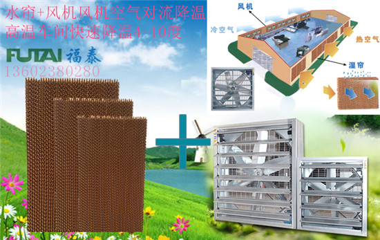 策略三是:鐵皮房和鋼結構的車間想快速降溫用負壓濕簾墻+風機做空氣對流降溫,水簾風機降溫效果也是比較明顯的。特種紙制蜂窩結構材料由于水簾紙蜂窩密度讓水蒸發(fā)的面積簡介的放大了N多倍看似一片水簾紙卻能讓整個車間像進入了小時候地窖一樣的涼爽。當然它的前提必須要有風機的大量抽風風壓經過水簾后經過車間是涼爽的,簡單的理解就是水吸收空氣中的干濕球蒸發(fā)制冷的原理。